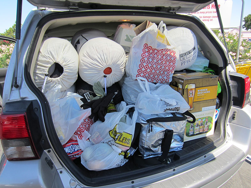 事前にREIでテントや寝袋を借り、食料なども調達していざ出発。