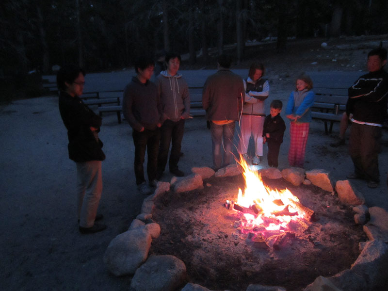 たっぷり肉を食べた後は、キャンプファイヤーに行き、健康的な時間にテントに入り就寝。