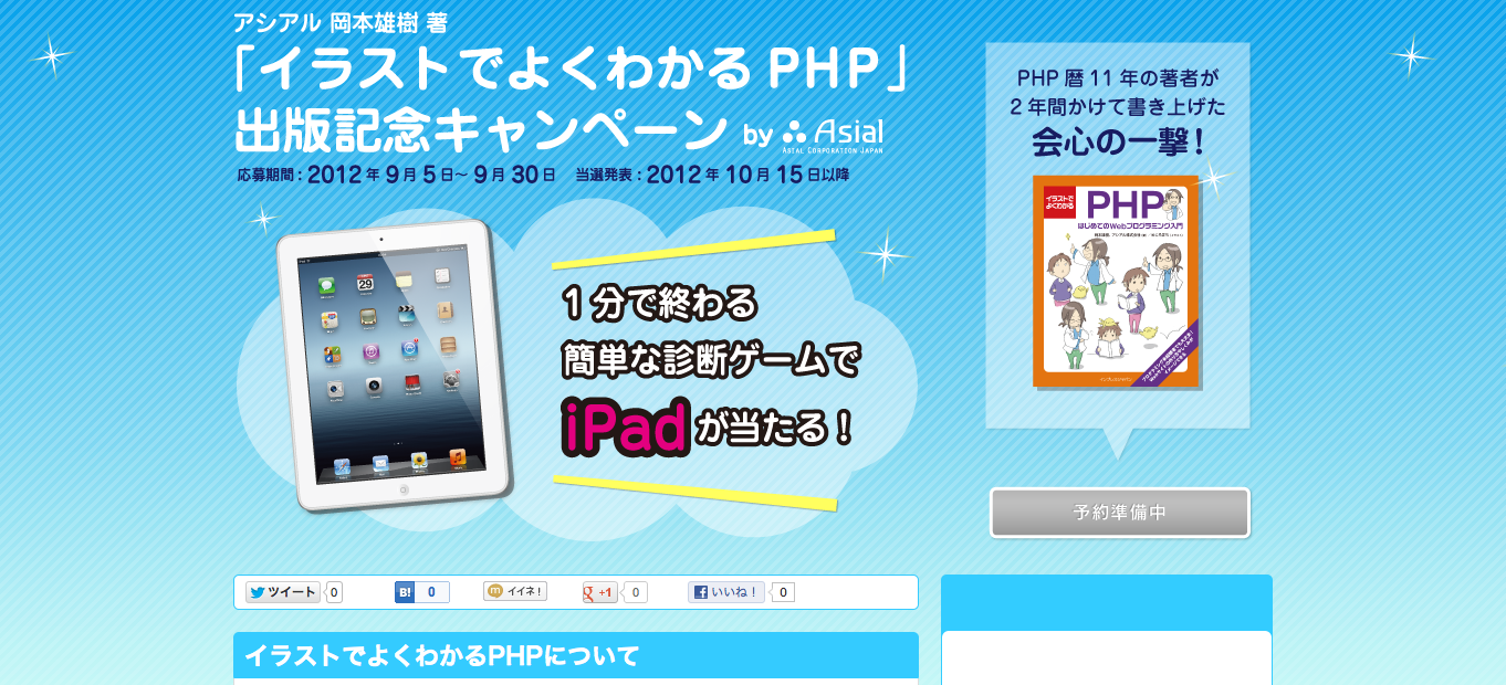 本日、アシアル岡本雄樹著「イラストでよくわかるPHP」の出版記念キャンペーンサイトをオープンしました!!