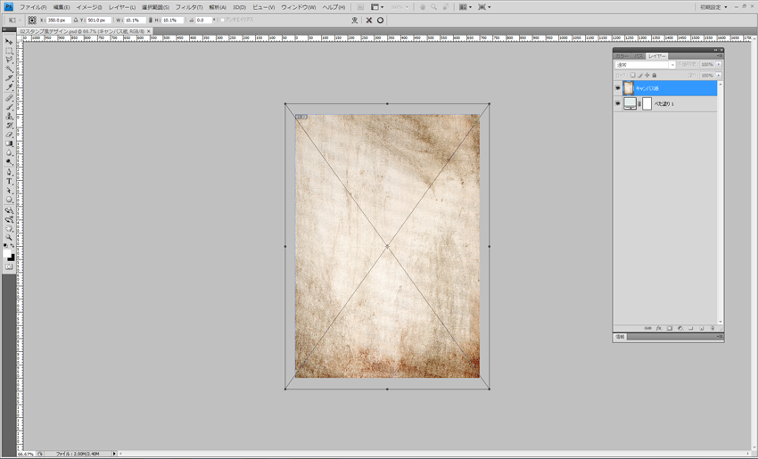 アプリケーションメニューから【ファイル > 配置】で、探してきた質感のあるキャンバス紙を選択し、配置します。
