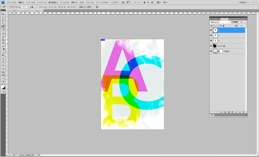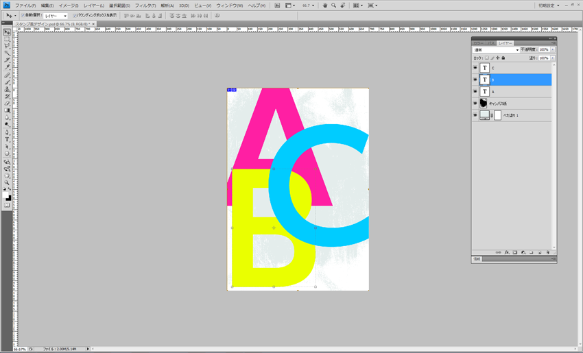 ツールパネルの【文字ツール】を選択して文字を描きます。