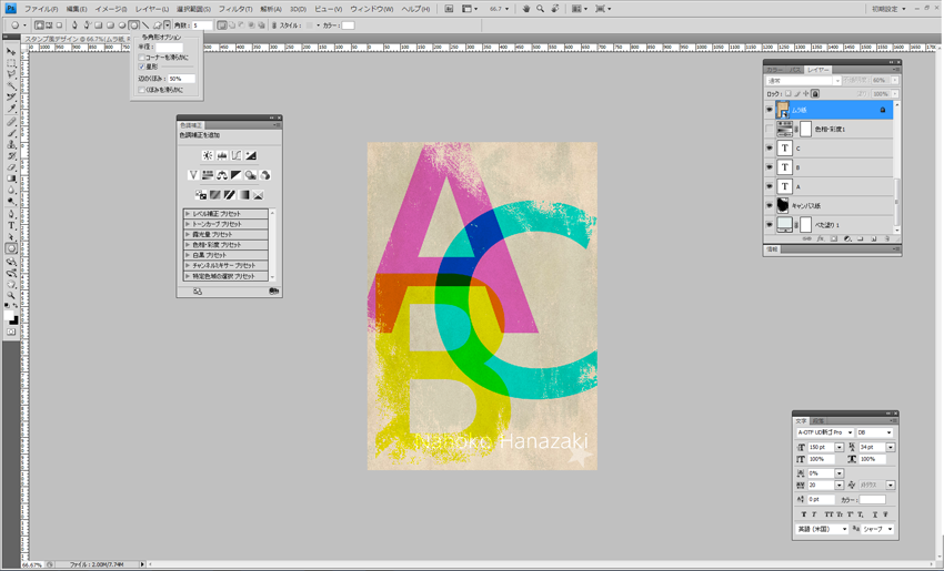 ムラ紙レイヤーの上にも星型オブジェクトを置きます。