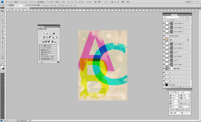 あとは星形オブジェクトの不透明をそれぞれ調節して画面全体の雰囲気を整えます。