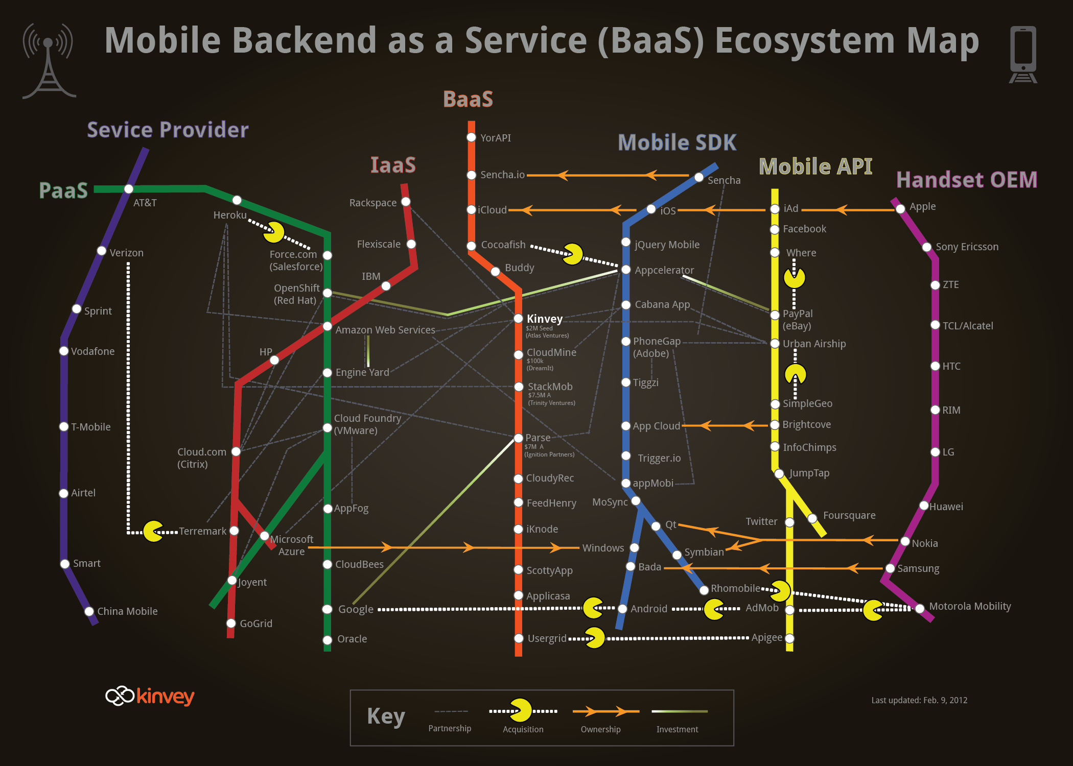 | Back-End as a Service | ACS Applicasa Apstrata Buddy CloudMine | CloudyRec Deployd FeedHenry iKnode Kinvey | kumulos mobDB Parse ScottyApp sencha.io | StackMob Usergrid (Apigee) Trestle (Flurry) QuickBlox |