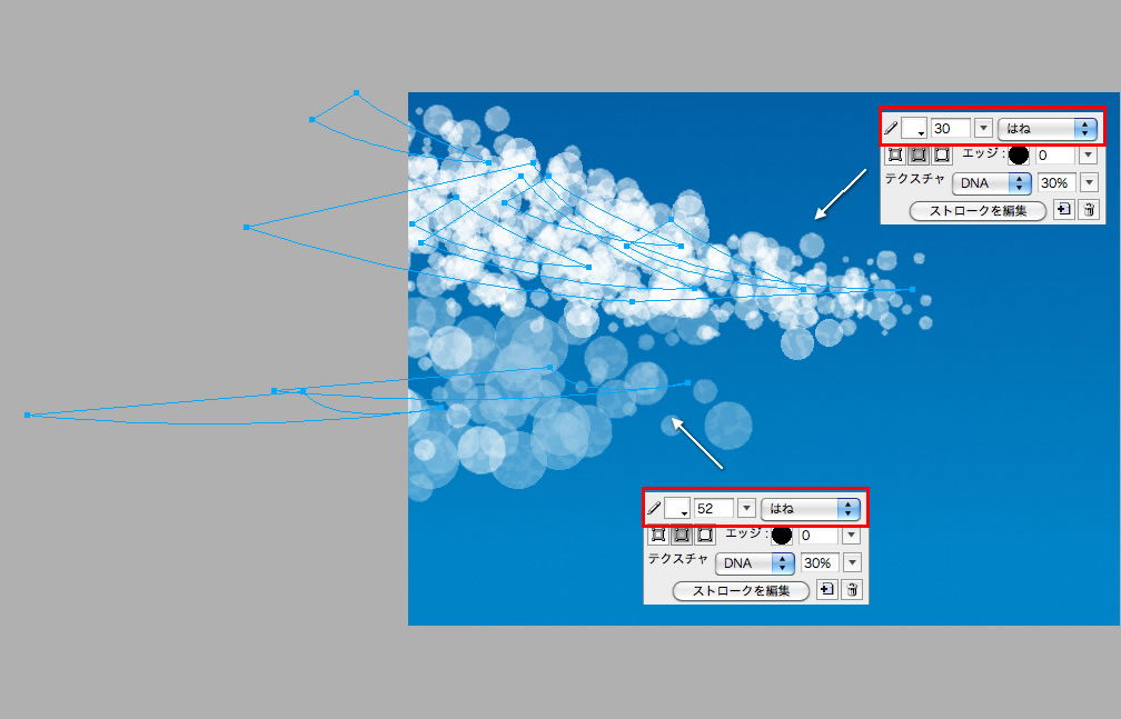 ちなみに、今回は線幅:30px(画面上)と線幅:52px(画面下)の2種類を作ってみました。