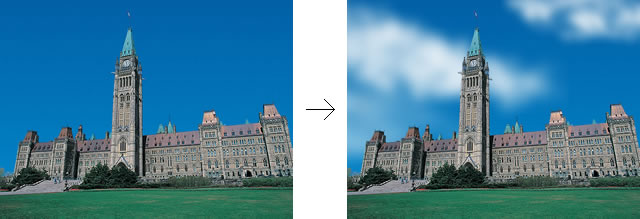 画像はあらかじめ空と建物にレイヤー分けしています。