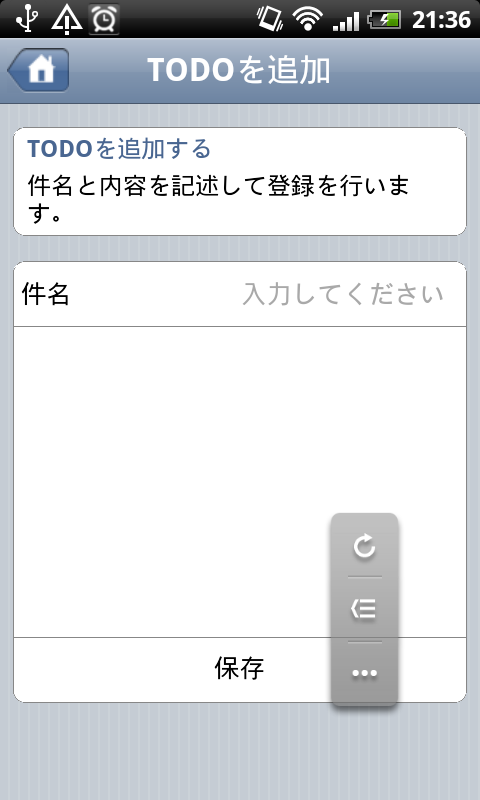 ワークショップで作成したアプリは、簡単なTODO管理アプリケーションです。Monacaを使って30分ほどの作業時間で皆さんアプリができたようです。