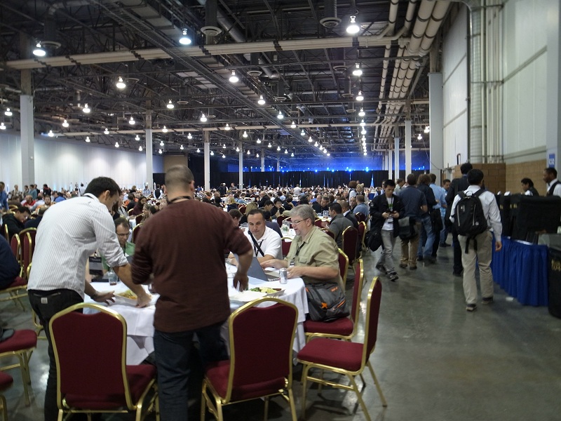 パーティー以外の時間でも、カンファレンス会場にはとても広い食事、休憩スペースがあり、毎日、朝食、昼食、ティータイムの時間にはバイキング形式で好きなものを食べられるようになっていたのが驚きでした。