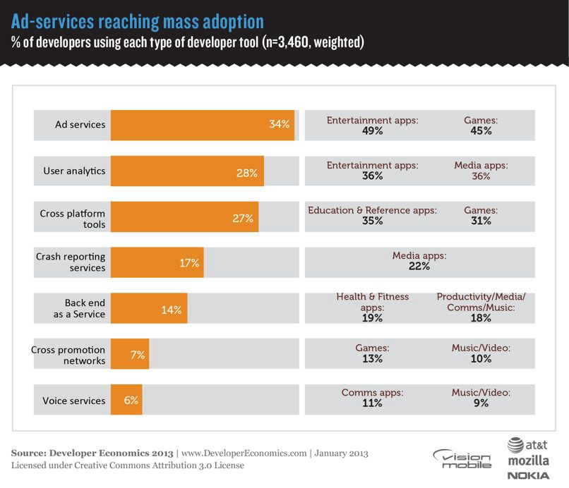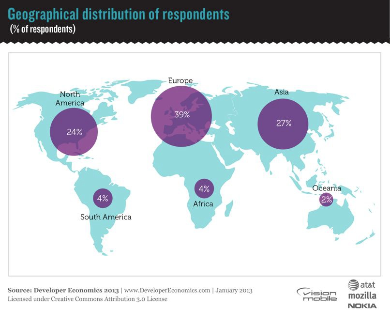 世界95カ国から3,460人の開発者がアンケートに参加し、加えてインタビュー調査まで行われており、かなりコストがかかっている調査だと思いますが、at&tやmozilla、NOKIAといったスポンサー企業のおかげで、こちらから無料でレポートを入手することが可能です。