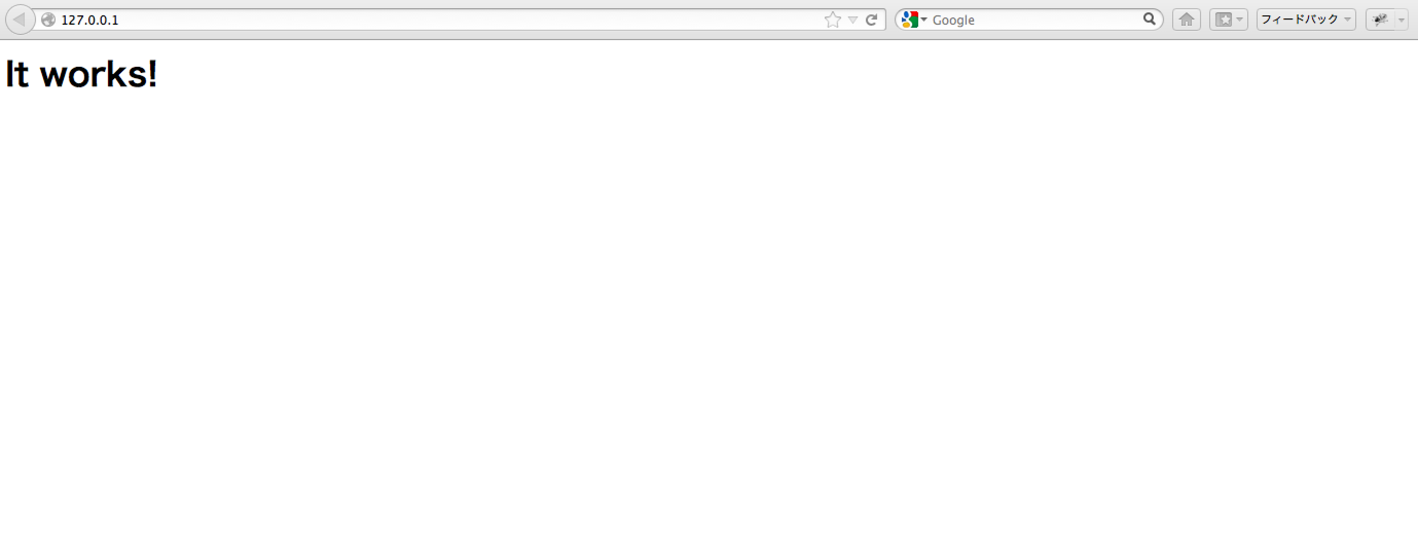 それでは、受け側のApacheをスタートさせ、再度、httpでローカルにアクセスします。