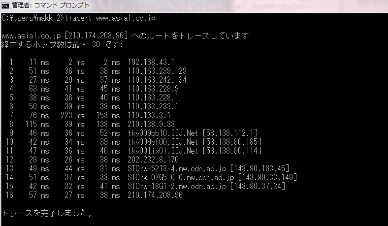 昔、大学のある授業で、みんなでいろんなドメインにtracertコマンドを実行してその結果を黒板に書き出してみる、というのをやったことがありました。