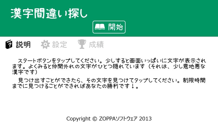 - ●漢字間違い探し (ZOPPAソフトウェア)