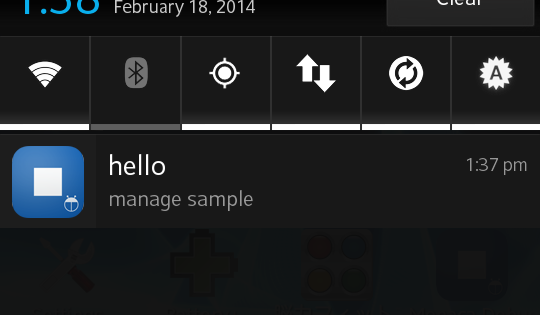 デバイス側にPush通知が届くと、通知エリアに通知が表示されます。