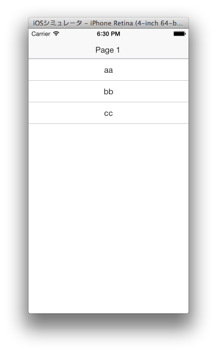 page1.htmlでは、ons-list を使ってitemsをリスト表示しています。