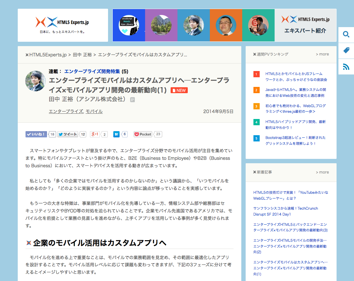HTML5 Expert.jpの「エンタープライズ開発特集」で弊社田中の連載コラム「エンタープライズHTML5とバックエンド─エンタープライズ×モバイルアプリ開発の最新動向」が公開されました。