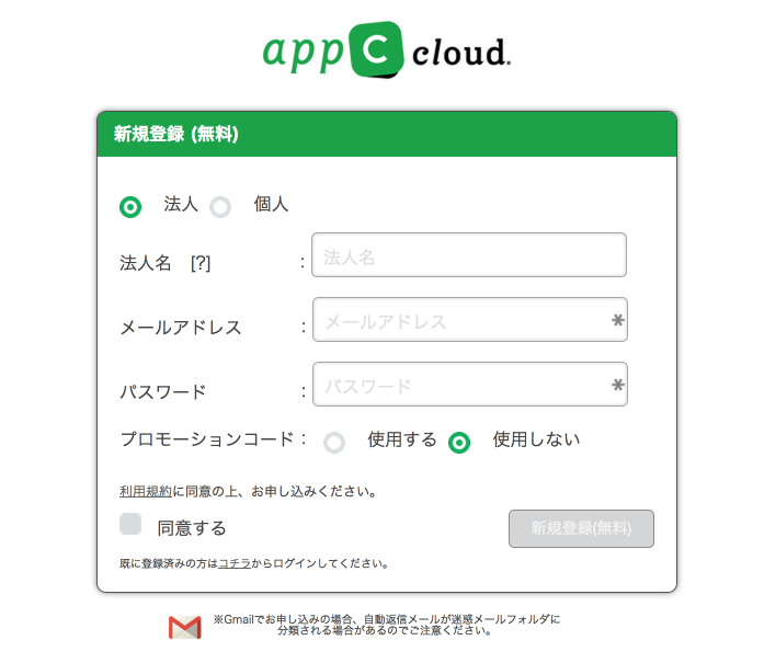 appC cloudへの新規登録の際にこちらのプロモーションコードを入力いただくと、3000円分のクレジットがアカウント登録時付与されます。