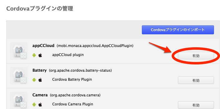 プラグイン一覧の中にあるappCCloudを有効にしてください。
