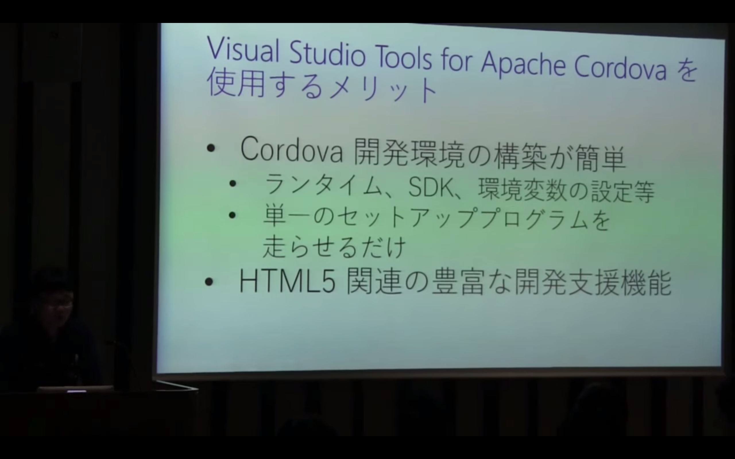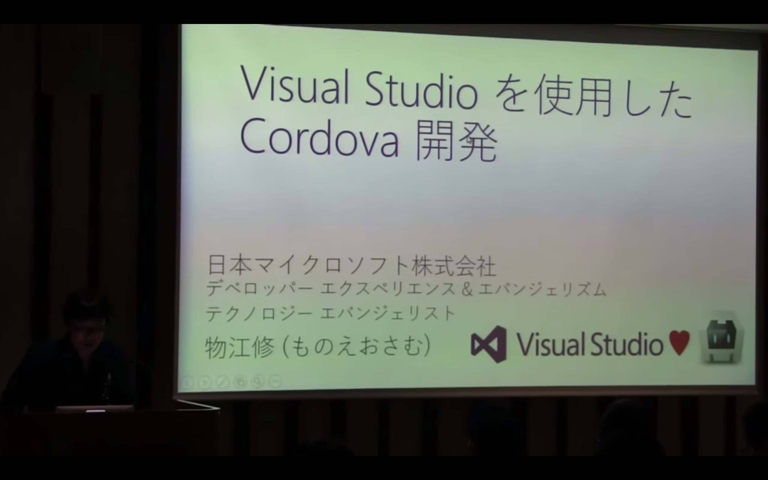 続いてMicosoft社の物江さんによりVisual Studioを使用したCordova開発という発表です。