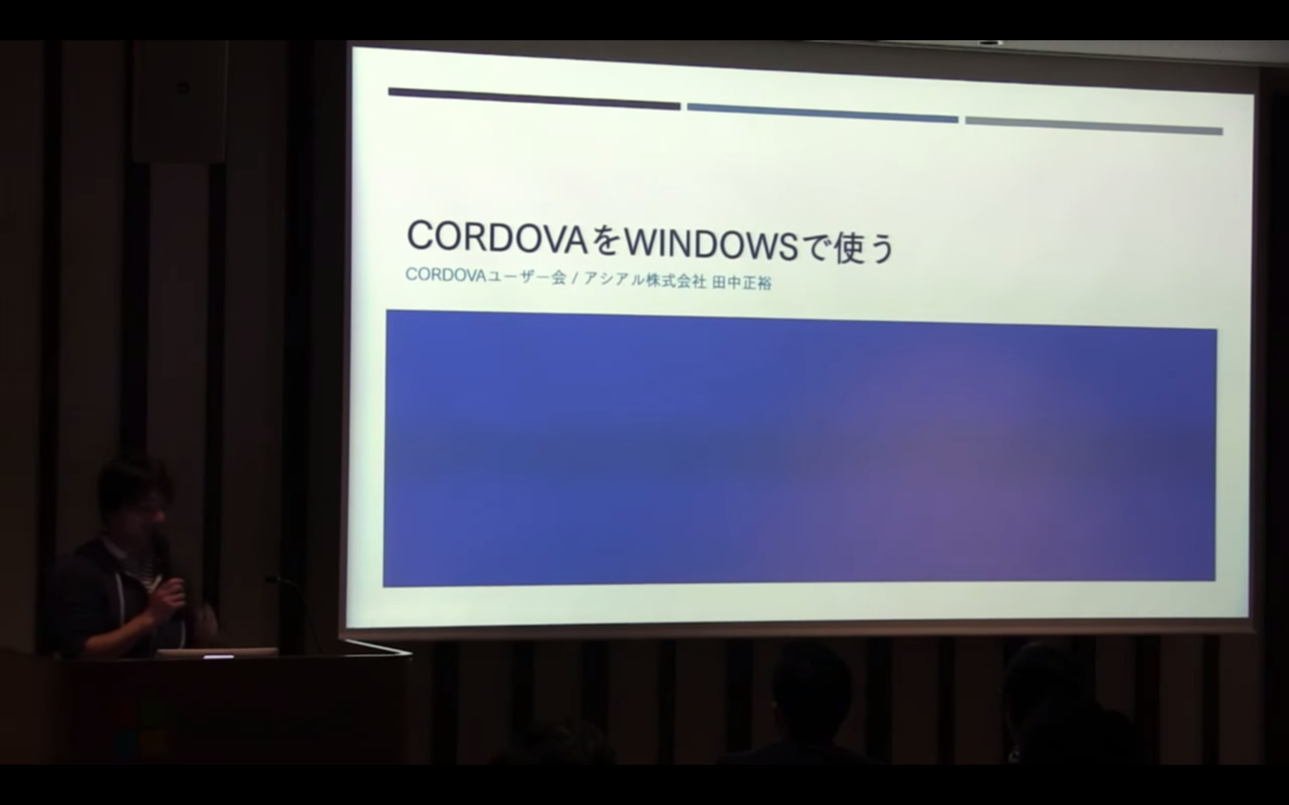 最後に当社代表取締役の田中によるCordovaをWindowsで使うというセッションです。
