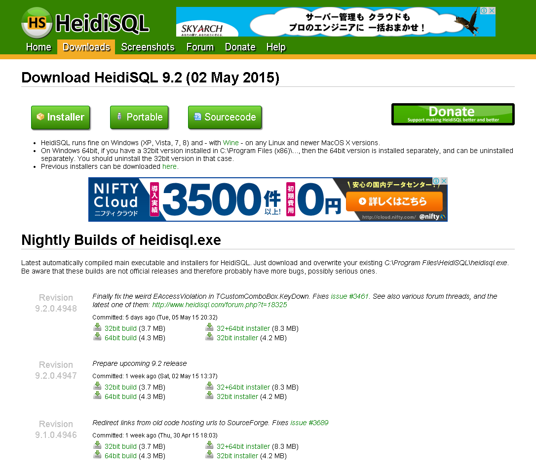 まずはHeidiSQLのサイトから、インストーラーをダウンロードします。