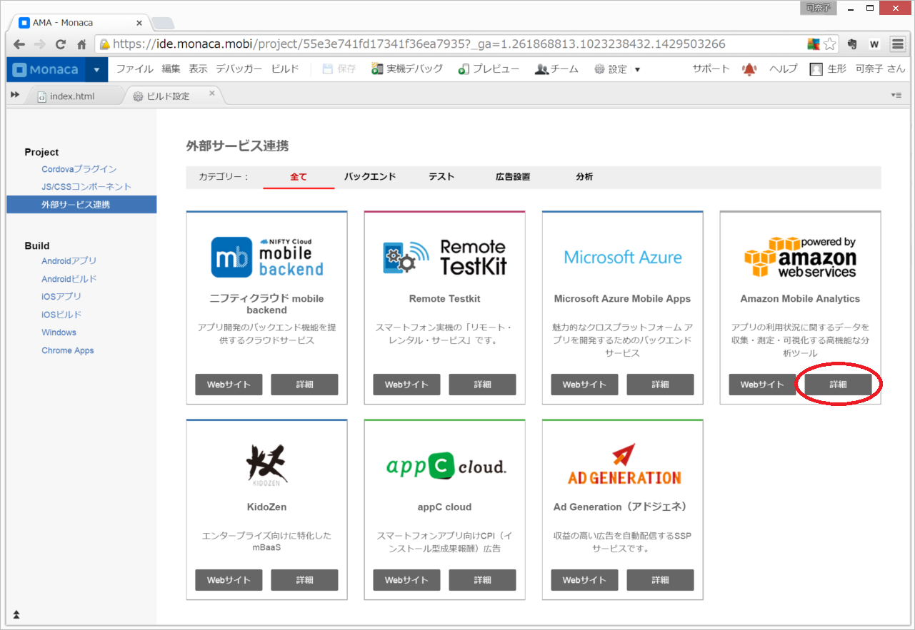 Monacaのサービス連携機能に、新しくAmazon Mobile Analyticsが加わりました!
