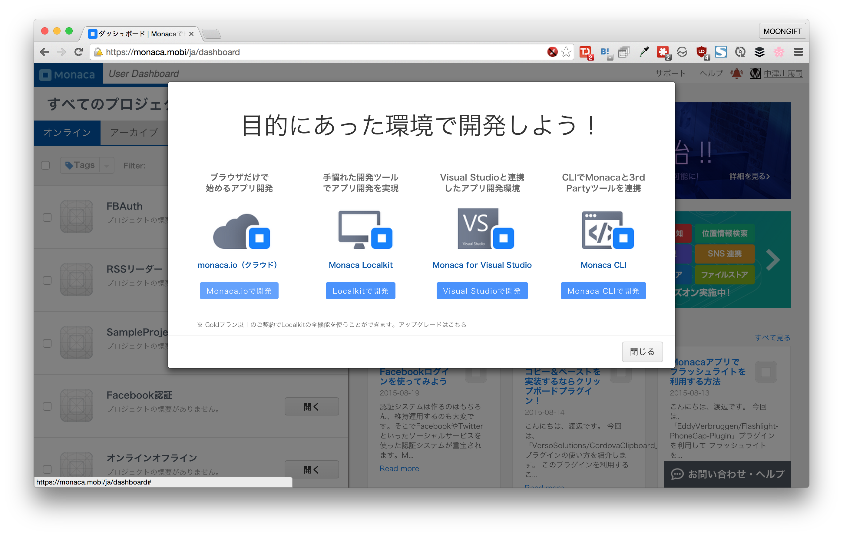 任意のCordovaプラグインが使えるのはGoldプラン以上ですが、これによってMonacaアプリの可能性が格段にあがります。ぜひお試しください!