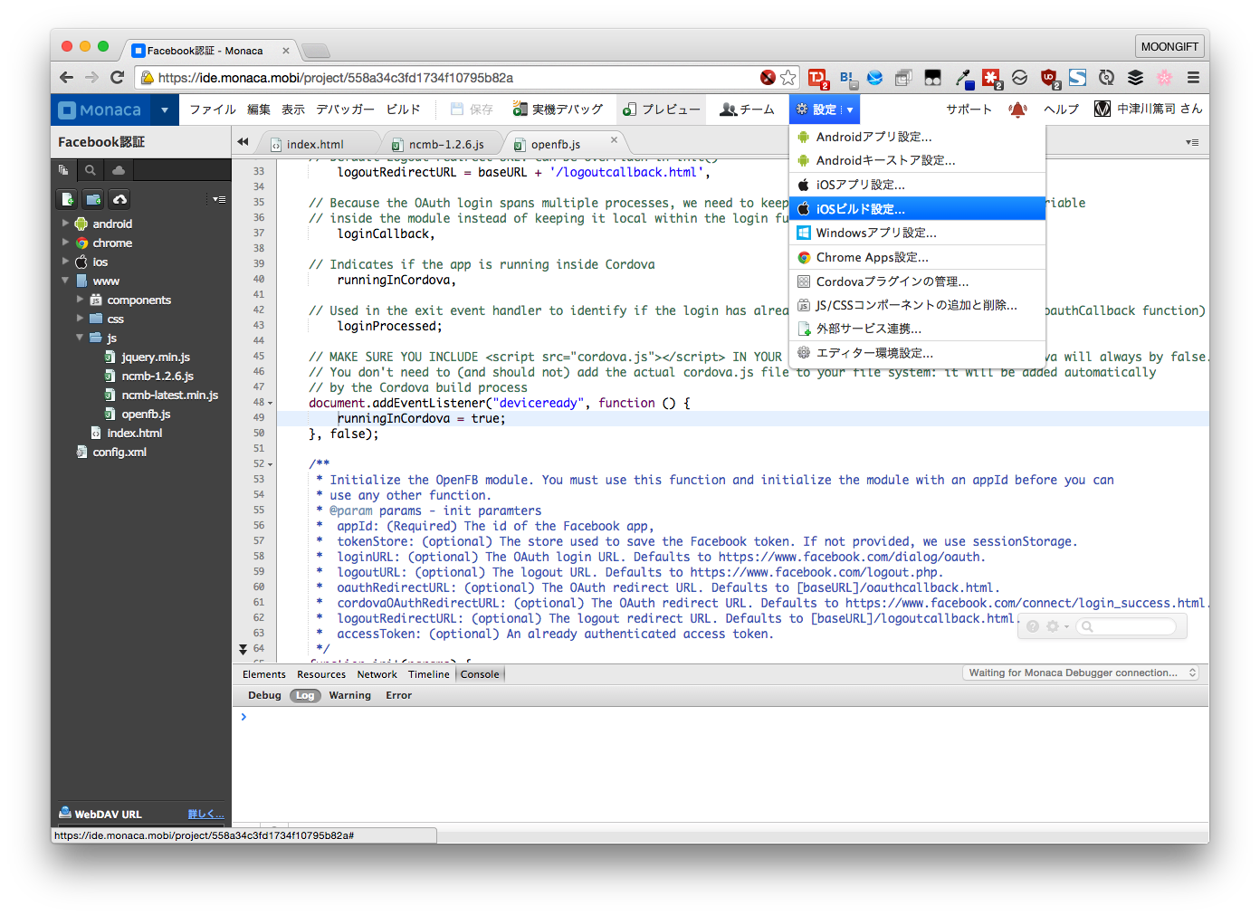 まずはMonaca IDEを使ってプロジェクトを開きます。