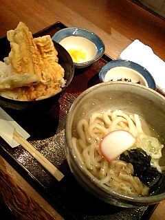 今日私が食べたのは「讃岐うどんと穴子一本天丼」、会社近くにある創作和食のお店「こりゃうめぇ」にてです。さっぱりしたうどんと穴子の天丼が絶妙にマッチしててなかなか美味でございました。