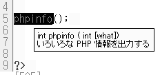 エディタとして、シンタックスハイライト(コードの色付け)がないとはじまりません。この機能は、どのエディタにも大抵あります。初心者に限らずPHPになれた方でも、しょうもないtypoでエラーをだしたりしますよね。