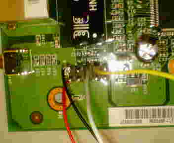そして、この写真がBBR-4MGの基盤にはんだ付けした部分で、黒線がGND、赤線がVCC、白線がRXD、黄色の線がTXDになります。携帯のカメラで撮ったので画像が汚いです。。