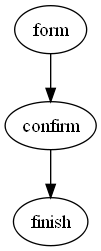 form -> confirm -> finish;