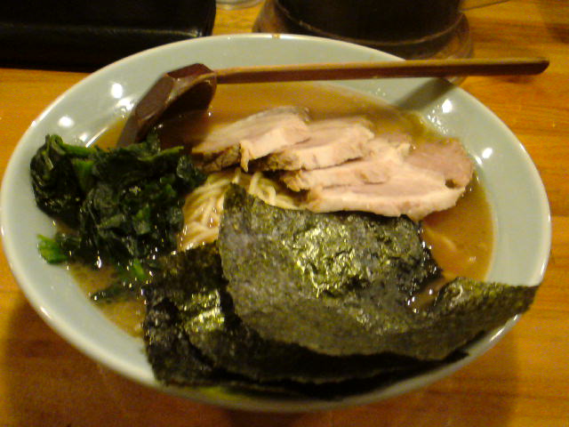 家系ラーメンです。思ったより食べやすかった記憶があるのですが、油少なめにしたようなしなかったような・・・。