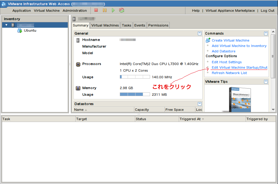 管理画面を表示し、Configure Optionsにある「Edit Virtual Machine Startup/Shutdown Settings」をクリックします。