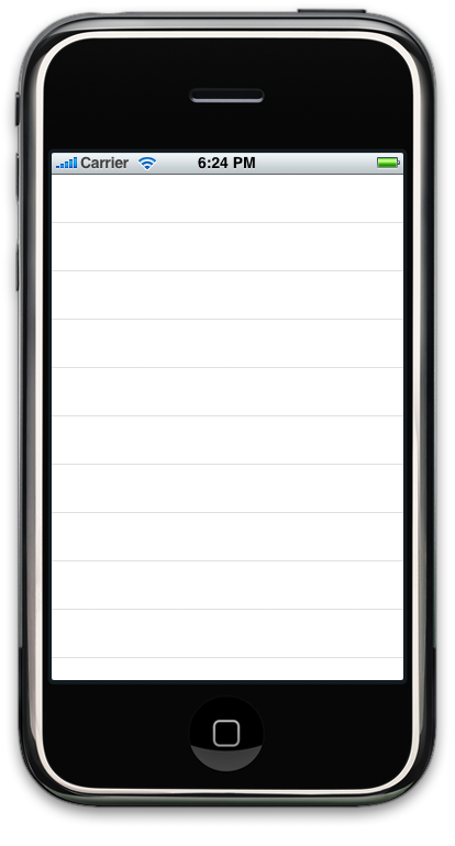 こうして、テーブルを操作するUITableViewControllerが保持しているテーブルのViewを、iPhoneの表示側であるUIWindow内にsubviewとして渡すことで、上でビルドしたようにテーブルが表示されるようになります。