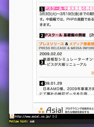 Firefoxの拡張機能であるXUL/Migemoを使用してhintを絞り込むプラグイン。Migemo欠かせません。