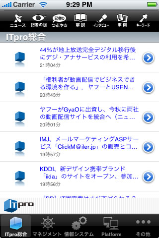 「ITpro」アプリケーションは、ITプロのニーズに応える専門情報サイト「ITpro」の記事を無料で閲覧することができるものです。iPhone向けにタッチパネルで操作しやすいユーザーインターフェースを備えています。