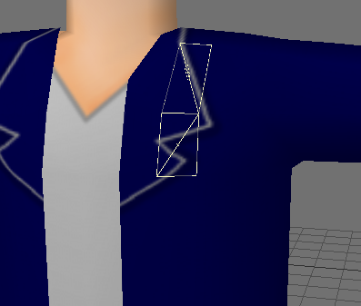 胴体については、もうさっさとテクスチャもつけてしまいました。テクスチャといっても、元々立体感のないイラストなので、襟の部分を描いたくらいですが。