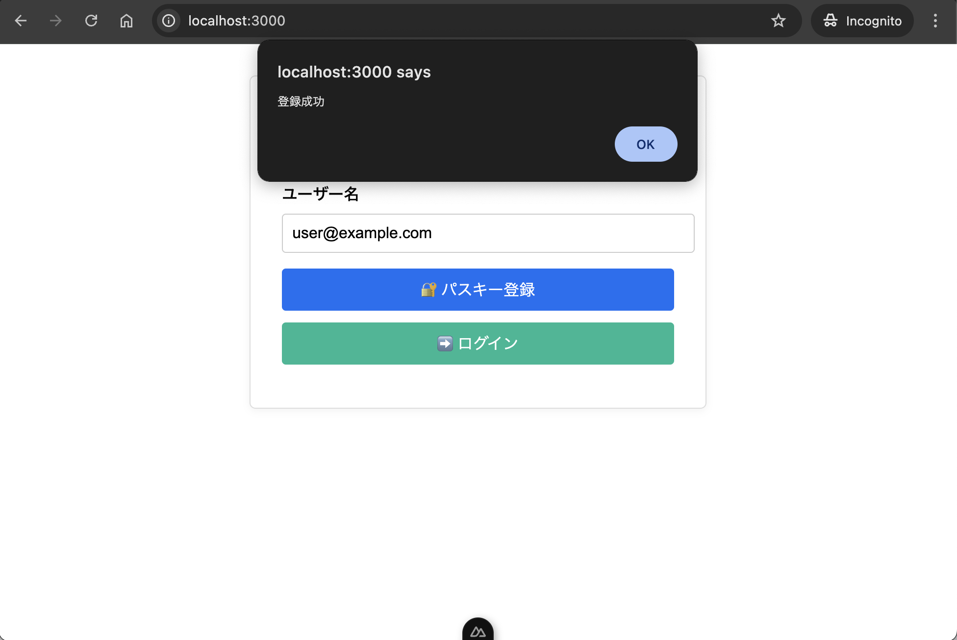 「登録成功」と表示されたらPasskeyの登録完了です。