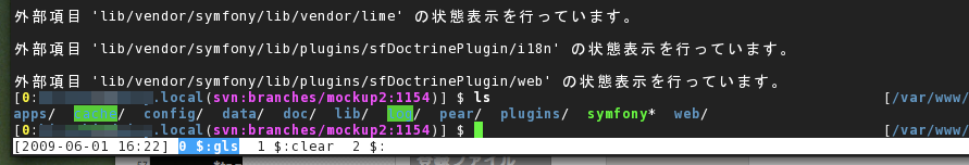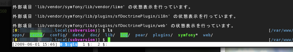 プロンプトにこれらの情報が表示されるだけでターミナルでの作業がものすごく便利になりました。しかし、プロンプトにこれらの情報を表示するよりはscreenのステータスラインの方がいいのかもしれないと思ったりもしないでもありません。