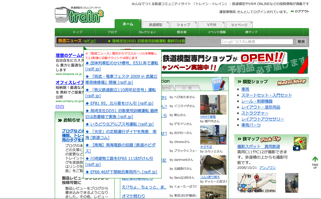今回使用した画像で気付かれた方がどのくらいいらっしゃるかわかりませんが、実は弊社で運用している鉄道模型コミュニティサイトのトレイントレインのサイトで実際に使用している箇所を記述しました。トレイントレイン内で「qtip」は利用させていただいております。