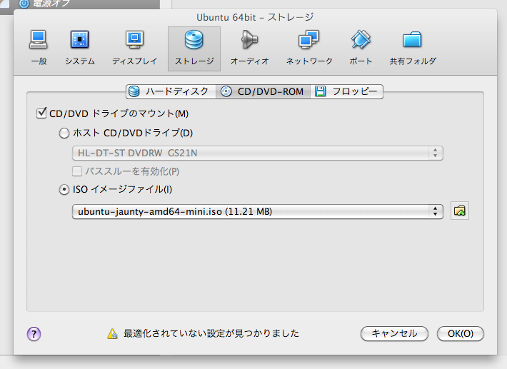 あとはインストールしたいOSのCDなりイメージファイルなりを「設定」の「ストレージ」の項目で指定して