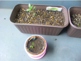 ペパーミントとおじぎ草は一部にょきにょきとでてきてま す。他の芽はどうしたんだ。。