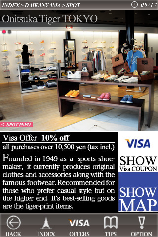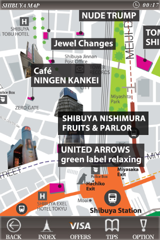 「Tokyo Style Guide × SOUND TRIP」では、東京のショップ情報、美術館、文化やファッション情報を、時刻にあわせて変化する音楽と共に楽しめます。GPSナビゲーションが利用できる地図や、VISAカードメンバーに対する特典や割引も提供されます。