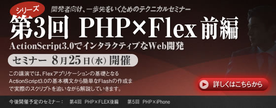 「PHP×Flex(前編)」PHPテクニカルセミナー(無料)第3弾の募集を開始しました!!
