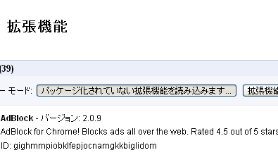 ボタンが3つ現れるので、「パッケージ化されていない拡張機能を読み込みます」ボタンをクリックします。