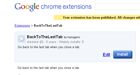 というわけで、前置きが長くなりましたが、そんな理由から「タブを閉じたときに直前に開いていたタブに戻る」動作をするExtensionを作ってみることにしました。