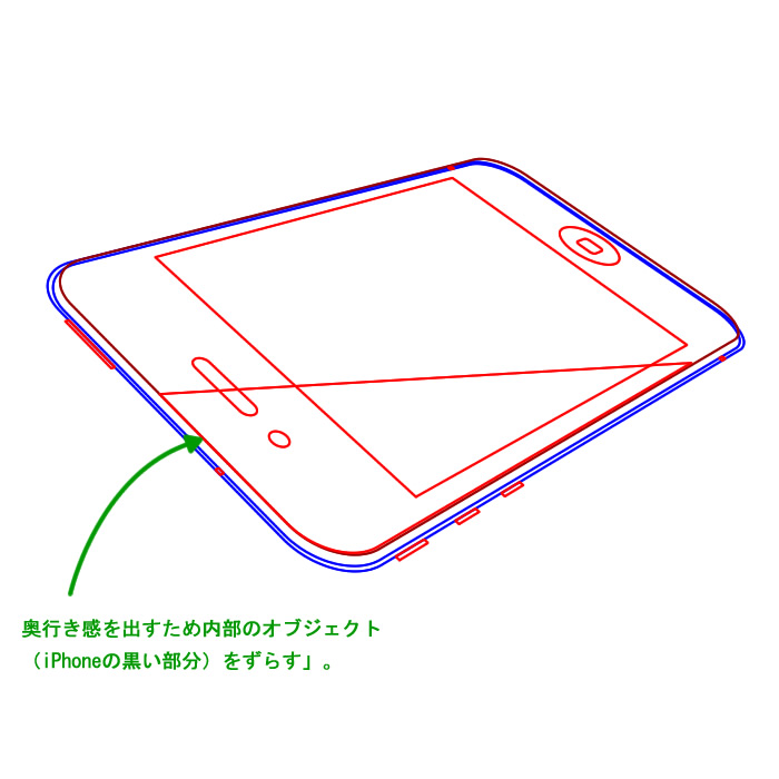 また、奥行き間が出るように、変形したオブジェクトを数ピクセル動かしたりして微調整します。