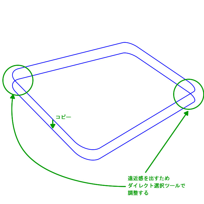 そして、遠近感がでるようにコピーしたオブジェクトの左右のコーナーを微調整します。