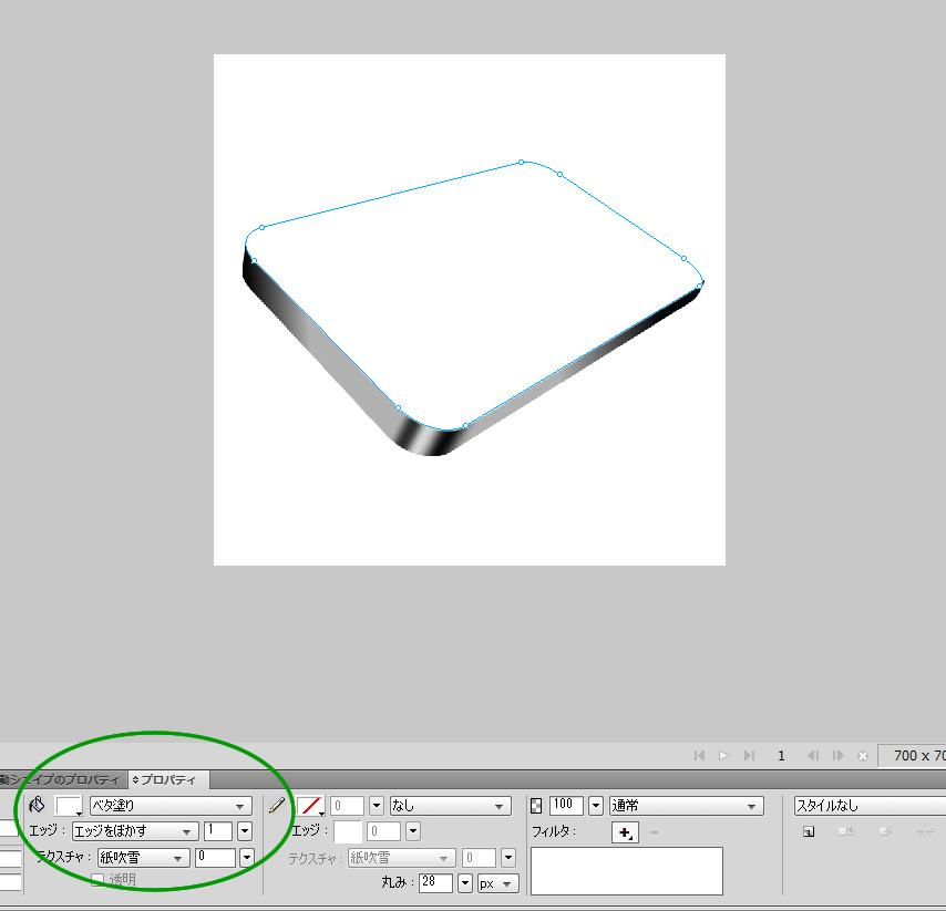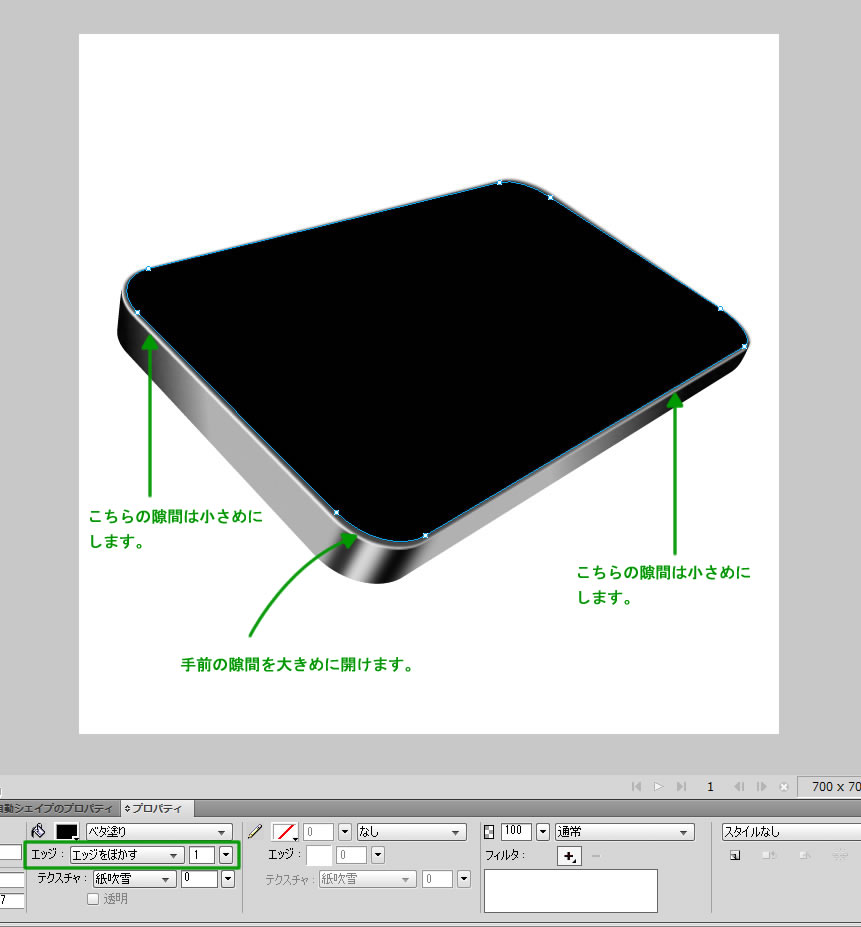 方法は、ステンレスバンドと隣接したオブジェクトを白でベタ塗り、エッジをぼかすを1pxに設定します。