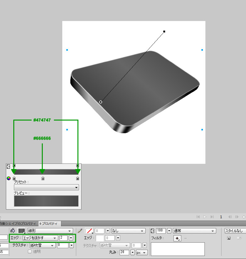 ・線形グラデーション:#474747→#666666→#474747 エッジをぼかす(2px)